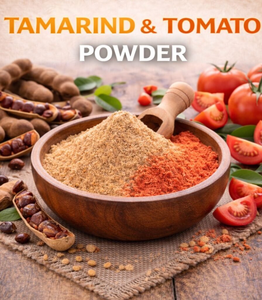 Our premium Tamarind & Tomato Powder is a perfect blend of high-quality tamarind and ripe tomatoes, carefully processed and finely ground to retain natural tangy flavor, color, and nutrients. It delivers a balanced taste, making it ideal for a variety of food applications.